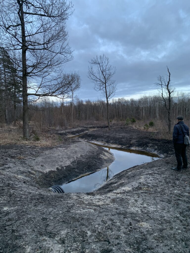 Den 26 mars genomförde vattenrådet ett studiebesök till Långbromosse där vi tittade på ett tvåstegsdike och en meandrande bäckfåra som skapats av det lokala dikningsföretaget med stöd från LOVA. Kristin Bertilius, som är en av medlemmarna i dikningsföretaget berättade om projektet. Syftet med både tvåstegsdiket och meandringen är att göra vattnets färd genom landskapet långsammare så att mer näring hinner tas upp av växtligheten samt att minska avrinningen och höja grundvattennivån. Det är viktigt för att minska nedbrytningen av det organiska materialet i mossen som sker när vattennivån sjunker och mossen syrsätts, vilket leder till att växthusgaser frigörs till atmosfären samt att näring läcker till vattendraget. Läs mer om åtgärderna här.